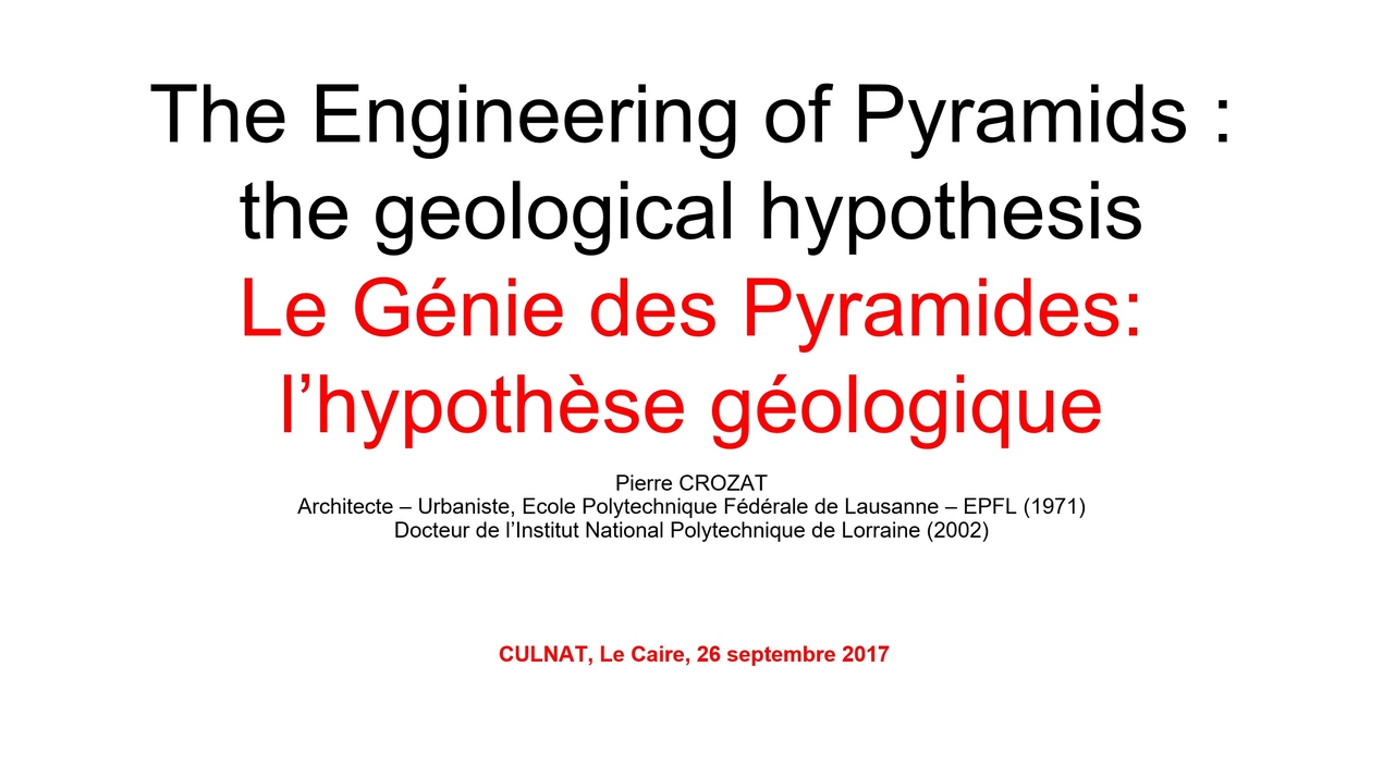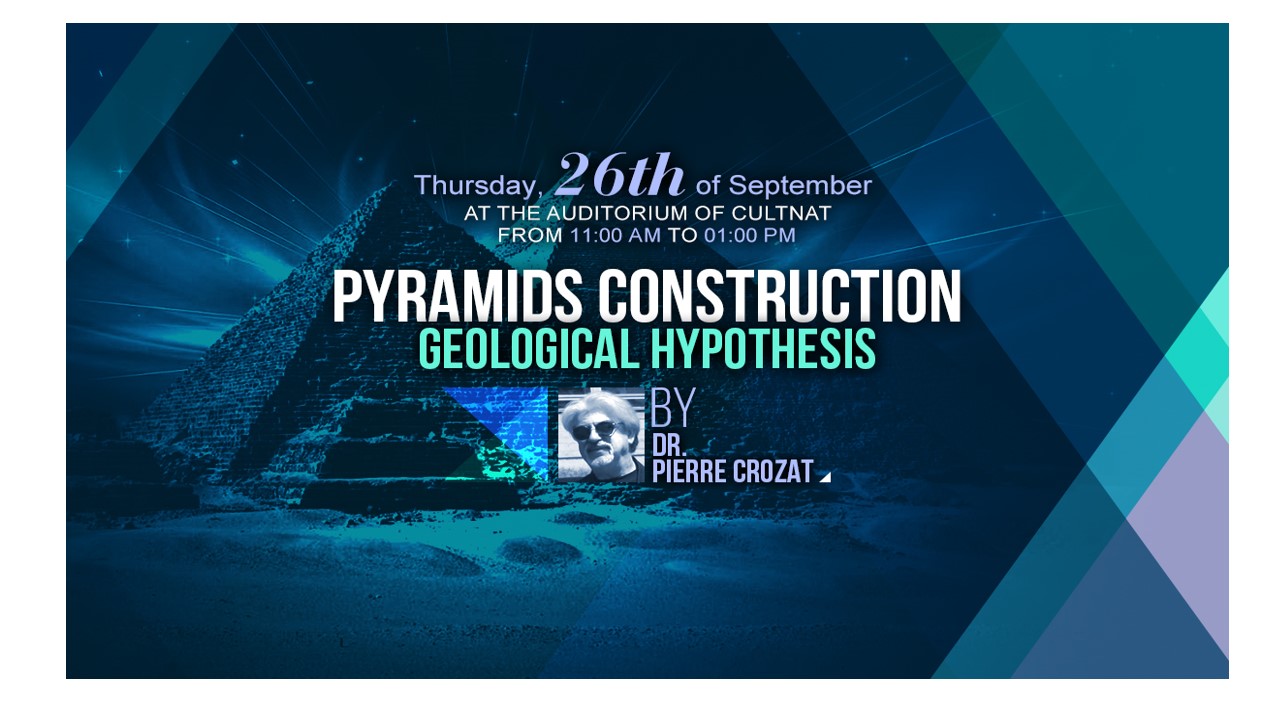 2017 – Conférence publique “KHÉOPS : hypothèse géologique” dans l'auditorium du CULNAT (Centre de Documentation du Patrimoine Culturel et Naturel) au Caire (ÉGYPTE) à l’invitation de Professeur F. SALEH, fondateur, directeur émérite.