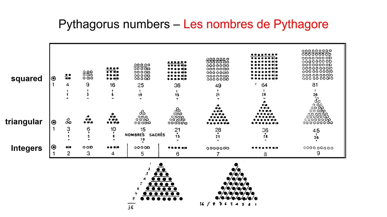 Pour l'Architecte que je suis, les Nombres Triangulaires comptabilisent et forment chacune des faces quand la série des Nombres Carrés représente l'accroissement de la base, de « l'accroissement pyramidal ».
