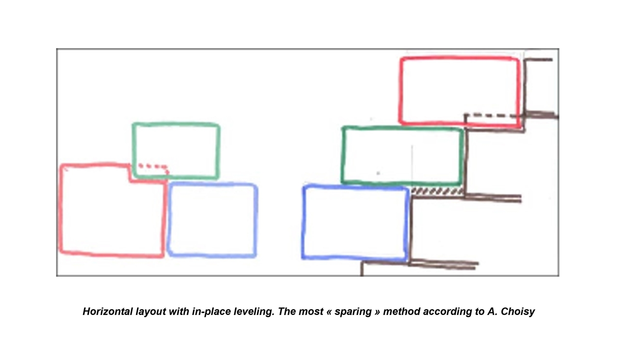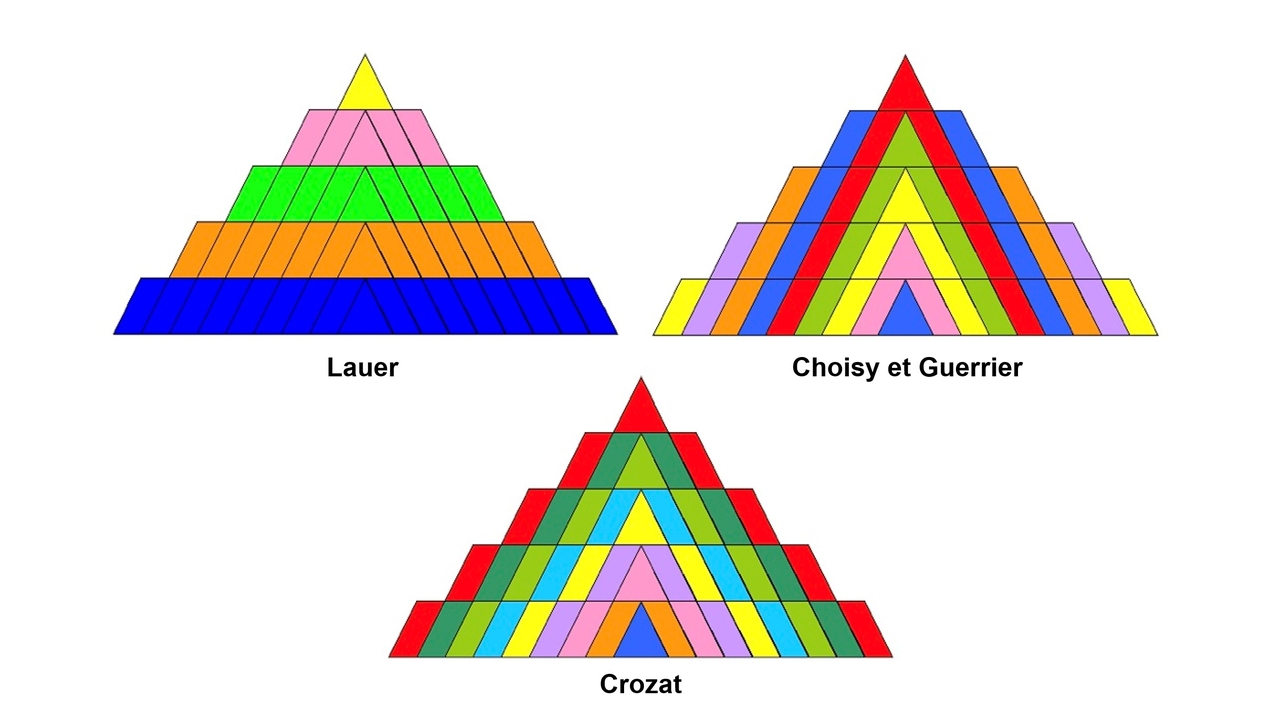 Ces 3 schémas comparatifs d’une même forme impliquent 3 façons de faire différentes dont les 2 premières sont fausses car elles nécessitent, pour Lauer une rampe frontale adjacente, et pour Choisy et Guerrier un système ascensionnel « en rappel » (si l’on en croit les croquis de Guerrier), alors que la méthode Crozat se sert – comme le mur de l'Aire de battage de Cipierre – du début de l’enveloppe suivante pour exhausser la précédente, non plus de limite anthropométrique mais de hauteur d’échafaudage en bois (10 m, soit la hauteur des murs de fortification des villes égyptiennes sous la III° dynastie).