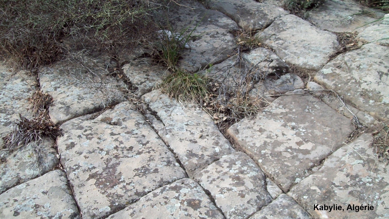 Damier de fracturation naturelle en Algérie sur un versant de fort pendage.