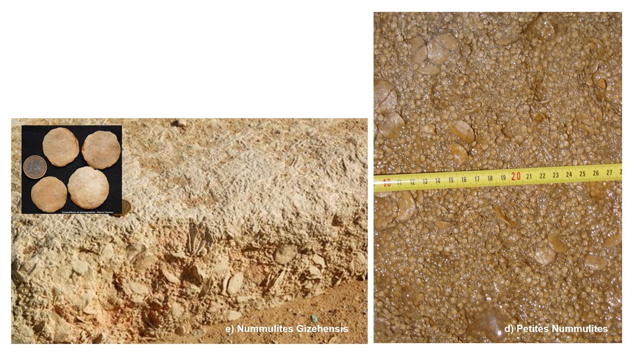 NUMMULITES (de même forme que les pièces de monnaie) grosses et petites.