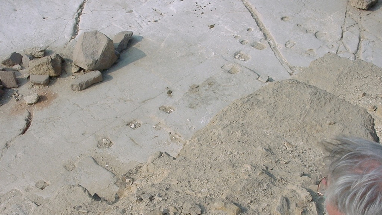 DETAIL des Tectoglyphes (écriture tectonique) : « ce que tout le monde peut voir » indiquant le mouvement de cisaillement de la roche-mère. Encore fallait-il que le hasard, mais surtout l’œil du géologue spécialisé en recherche pétrolière, tombe sur cet endroit précis qu’il recherchait sans le dire.