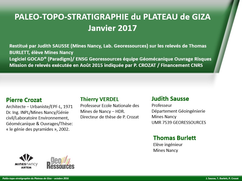 2017 - Études et simulation de la « paleo-topo-stratigraphie » du plateau de Gizeh : « ce que personne n'avait songé à faire ».